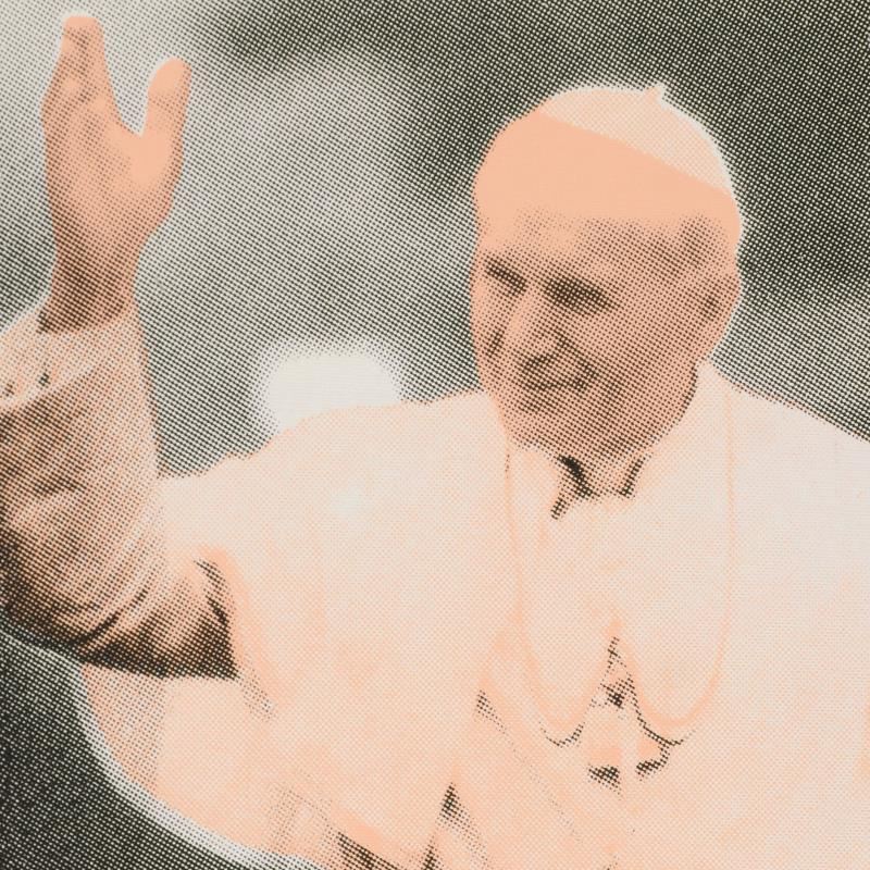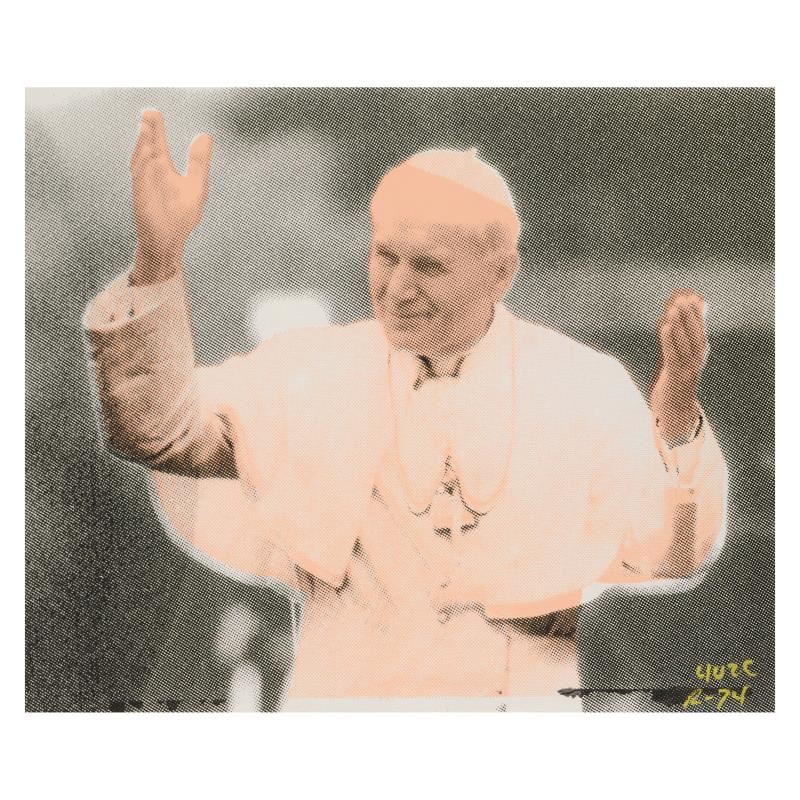 "The Pope" is a one-of-a-kind hand-pulled silkscreen on canvas by Ringo (Daniel Funes) - protege of Andy Warhol's apprentice, Steve Kaufman. This piece is hand signed by the artist and Includes Certificate of Authenticity. This piece comes from the Andy Warhol Legacy Series. Due to the nature of the canvas these, pieces will need to be mounted for framing. Measures approx. 15" x 12" (image).
