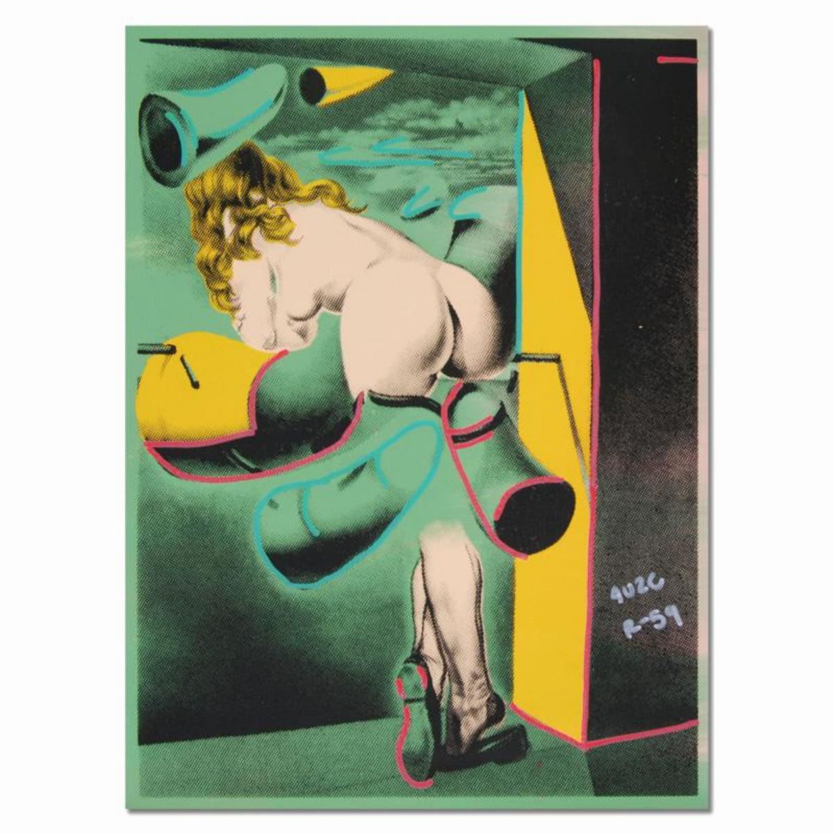 "Figure Out the Window" is a one-of-a-kind hand-pulled silkscreen and mixed media painting on canvas by Ringo. This piece is hand signed by the artist and comes from the Andy Warhol Legacy Series. Includes Certificate of Authenticity. Due to the nature of the canvas, these pieces will need to be mounted for framing. Measures approx. 13" x 17" (image). Reference #: 229123
