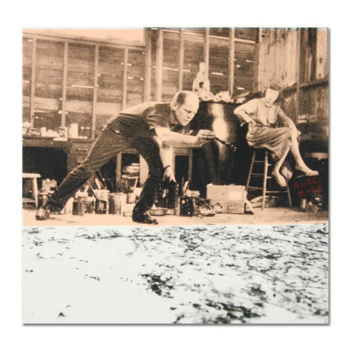 "Jackson Pollock at Work" is a one-of-a-kind hand-pulled silkscreen on canvas by Ringo. This piece is hand signed by the artist and comes from the Andy Warhol Legacy Series. Includes Certificate of Authenticity. Due to the nature of the canvas, these pieces will need to be mounted for framing. Measures approx. 16" x 16" (image). Reference #: 229182