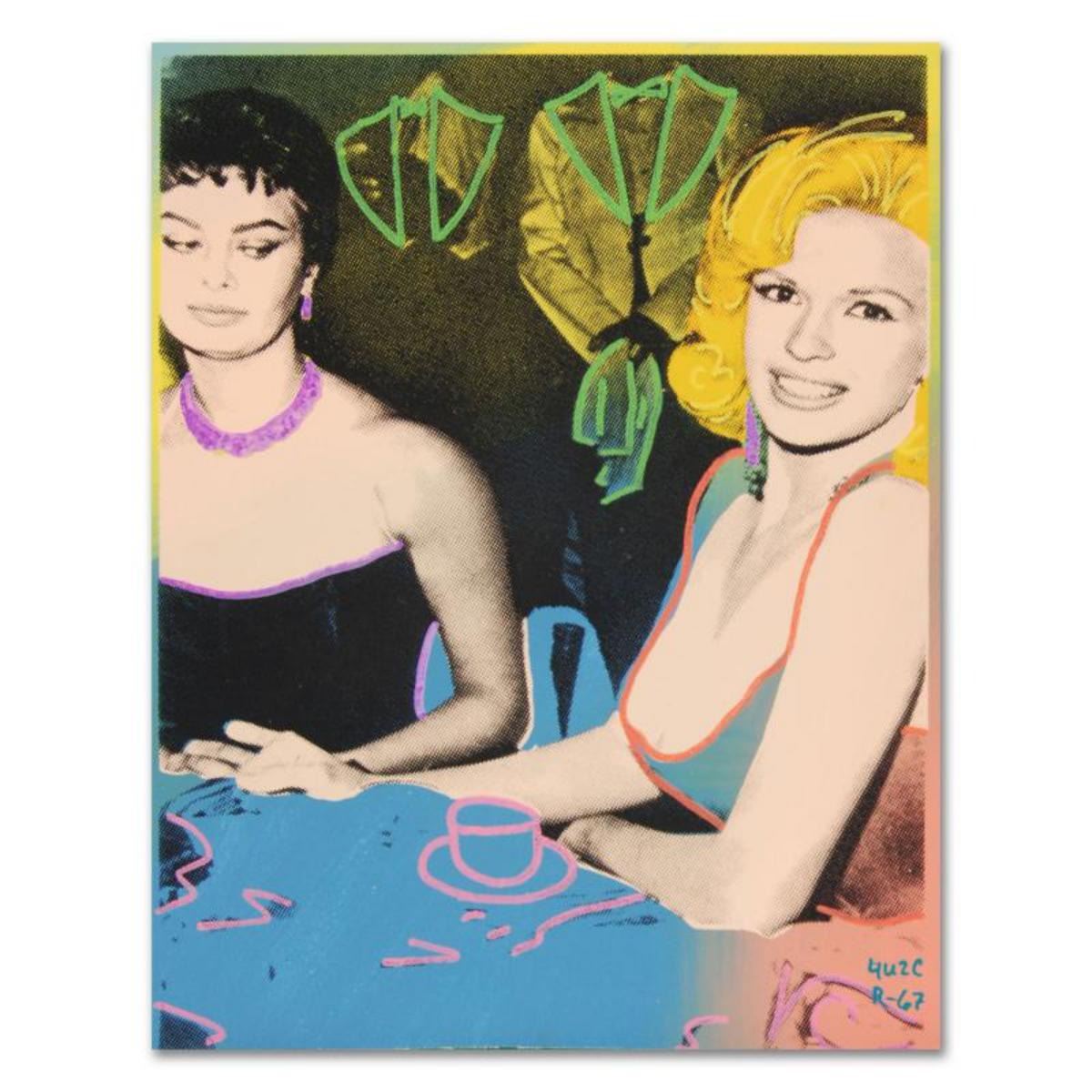 "Sophia Takes a Peek" is a one-of-a-kind hand-pulled silkscreen and mixed media painting on canvas by Ringo. This piece is hand signed by the artist and comes from the Andy Warhol Legacy Series. Includes Certificate of Authenticity. Due to the nature of the canvas, these pieces will need to be mounted for framing. Measures approx. 13" x 17" (image). Reference #: 229102