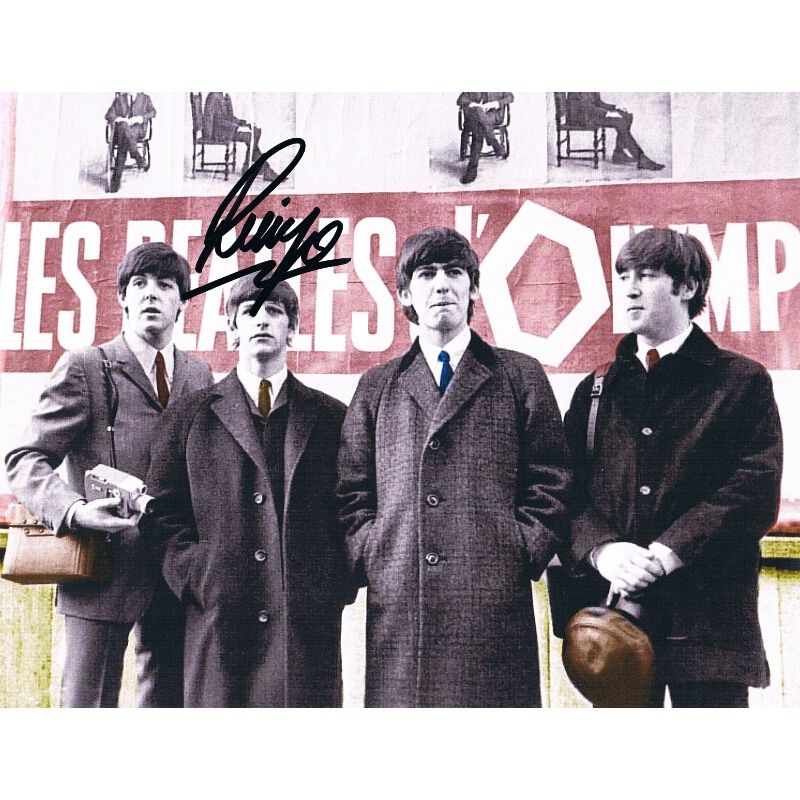 This autographed photo of Starr measures 10" x 8". The photograph shows the musician in a group photo with the other members of The Beatles.