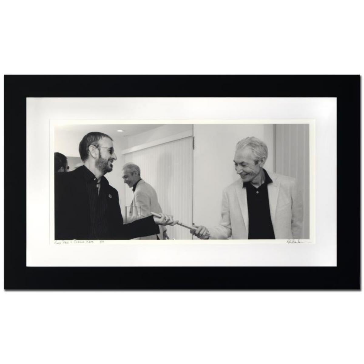 "Ringo Starr & Charlie Watts" is a limited edition giclee on paper, numbered and hand signed by acclaimed music industry photographer Rob Shanahan. This piece comes custom framed. Includes Certificate of Authenticity. Measures approx. 36" x 22" (with frame), 26" x 11.5" (image). Reference #: 211689.