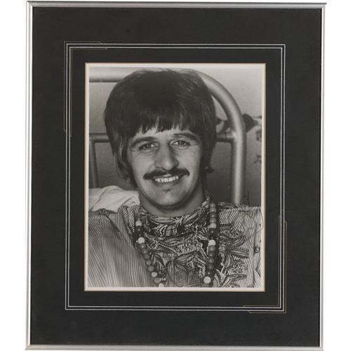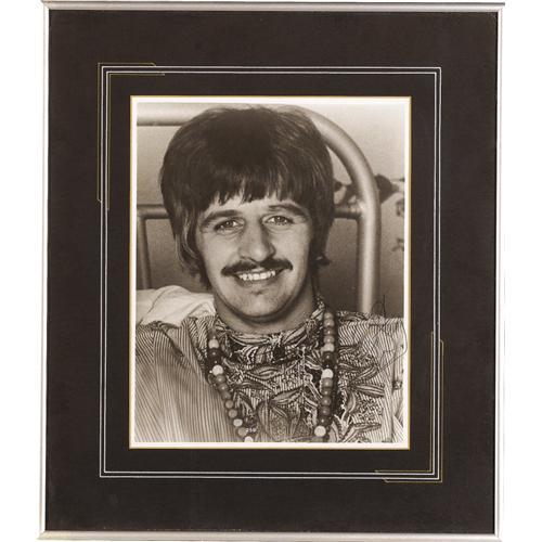 <B>Ringo Starr Signed Photo.</B></I> A b&w 8" x 10" photo of the Beatles' drummer, signed by him in black ink. In Excellent condition, matted and framed to an overall size of 13" x 15".<BR><BR><b>Shipping:</b> Framed (<a target="_blank" href="http://www.heritageauctions.com/common/shipping.php">view shipping information</a>) <BR><BR><B>Important noti