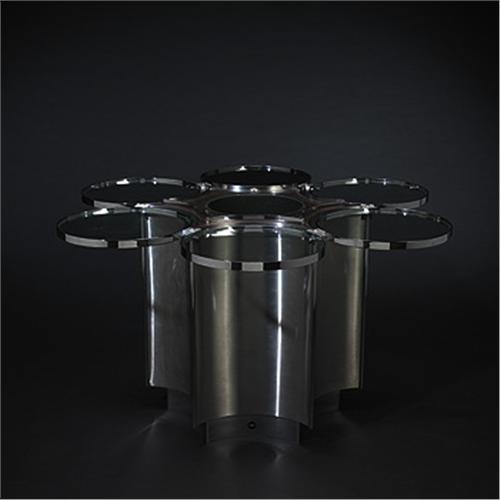 Ringo Starr occasional table United Kingdom, 1970 stainless steel, chrome-plated steel, glass 48"dia x 26.5"h Starr worked in collaboration with Robin Cruikshank for the few furniture designs he produced. Signed with artists' foil label to base: [R & R].