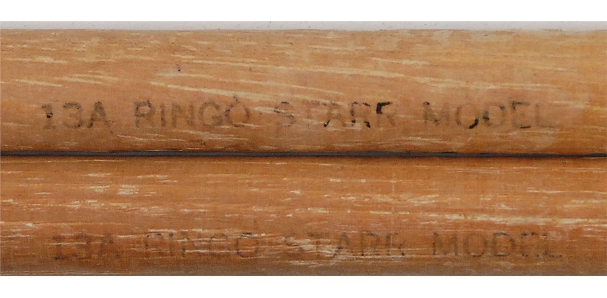 Original pair of 1960s Ludwig drumsticks, each labeled “13A Ringo Starr Model” on the side. In very good to fine condition, with overall wear to finish from use by an unknown drummer.