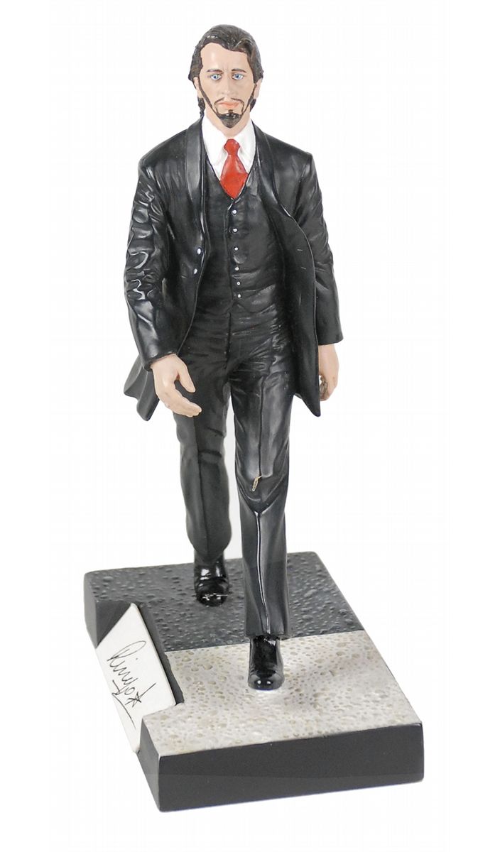 Limited edition Gartlan cold cast figurine of Starr in the famous Abbey Road pose, 441/1000. The 9.75? high figurine rests on a stand that looks like a portion of the crosswalk, cobblestones and all, and is signed on the front in black felt tip, “Ringo,” adding a star for his last name. In very fine condition.
