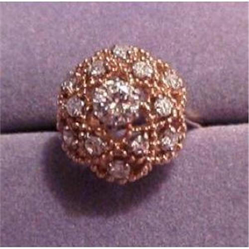18 kt yellow gold ring with 12 diamonds. Mounting has a twisted rope design in the shape of a ball. Center stone weighs .75 carats and total weight of diamonds ia 1.50 carats. Stones are brilliant and grade as VS1 and G color. A very nifty looking ring. Stones are scintillating and gorgeous.