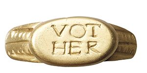 Rings. Gold ring. Roman, Balkan region, circa 3rd century AD. D/ Ring hoop with angled and engraved shoulders and a oval bezel with inscription VOT HER. 19 mm diameter.