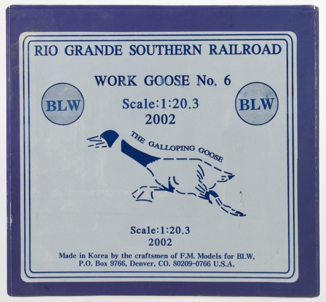 Rio Grande Southern Work Goose NO. 6 Berlyn Locomotive Works New Old Stock