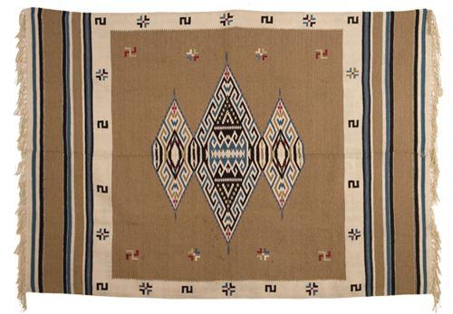 Rio Grande Weaving. 55" x 75". Intricate designs. c. 1940s. Fine condition. (est $1,000-1,500)