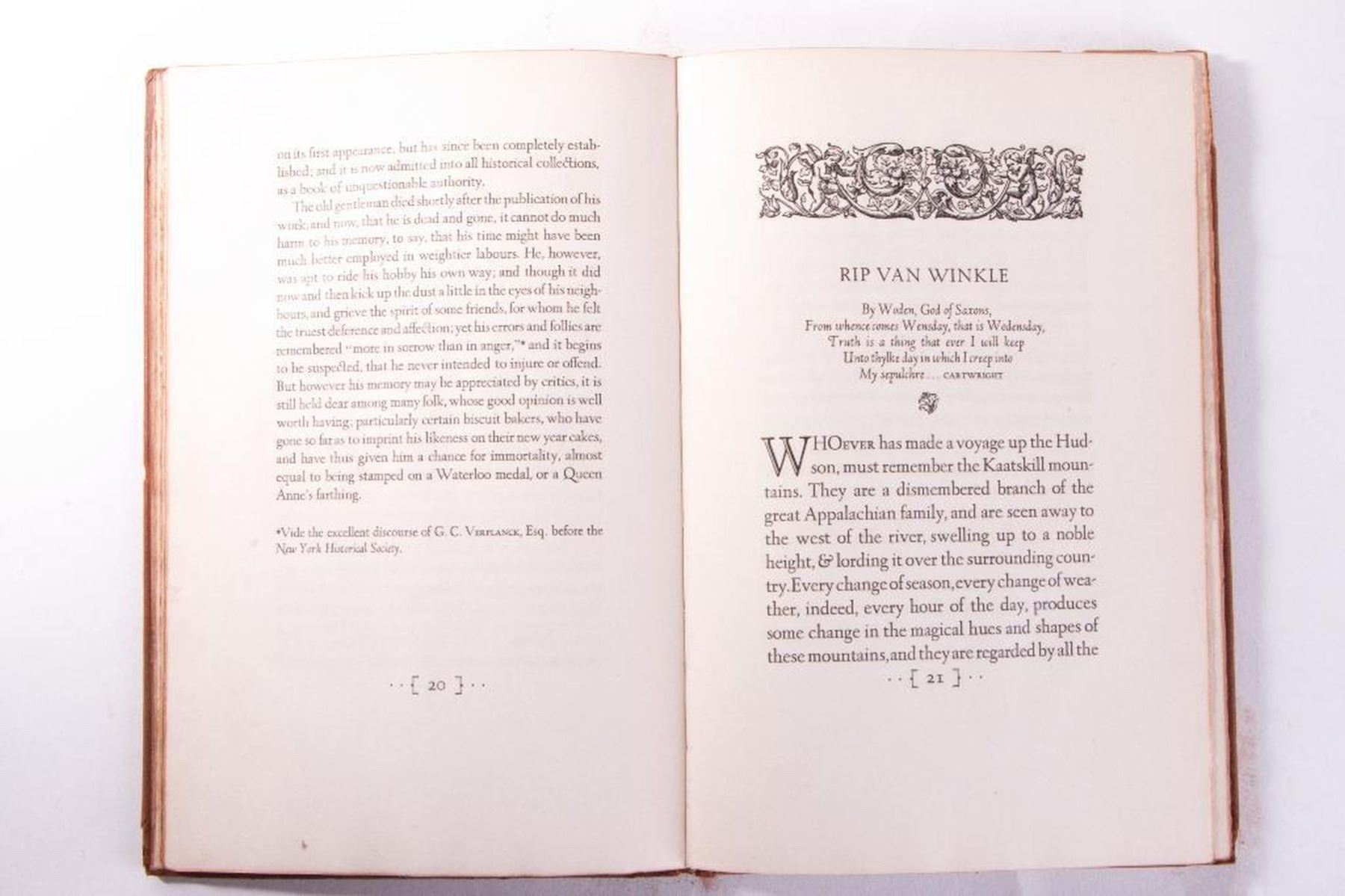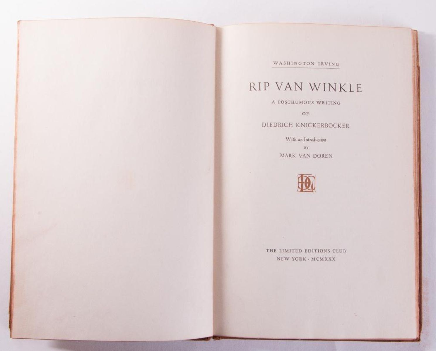 Title: Rip Van Winkle: A Posthumous Writing of Diedrich Knickerbocker Author: Place: New York Publisher: Limited Editions Club Date: 1930 Description: Limited 640/1500. Signed by Goudy. Brown leather Condition: Good. Leather spine is gone. Top piece of spine missing. Sunning to leather, top front cover board. DISCLAIMER: Turner Auctions + Appraisals does not guarantee the authenticity of the signature; please bid accordingly.