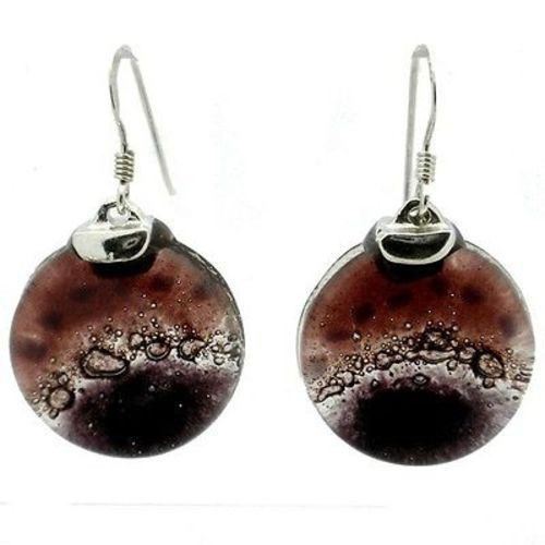 Ripe Plum Fused Glass Earrings with Sterling Silver - T **|**|** These earrings feature ripe plum washes to bubbles #CJGSERD_229546