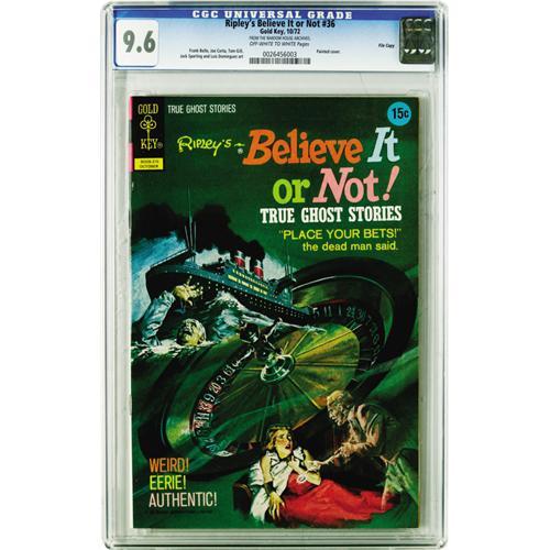 <B>Ripley's Believe It Or Not File Copies CGC Group (Gold Key, 1965-74).</B></I> All issues in this group have been certified with "off-white to white" page quality unless otherwise noted. Included here are <I>CGC 9.6</B></I> copies of #23 (CGC census 4/06: 2 in 9.6, 1 higher) and #36 (1 in 9.6, none higher), <I>CGC 9.4</B></I> copies of #8 (1 in 9.4, none higher), #9 (off-white pages; 2 in 9.4, 3 higher), #11 (3 in 9.4, none higher), #12 (5 in 9.4, none higher), #13 (off-white pages; 1 in 9.4, 4 higher), and #48 (2 in 9.4, none higher), and <I>CGC 9.2</B></I> copies of <B>Ripley's Believe It Or Not True Ghost Stories</B></I> #1 (1 in 9.2, 1 higher) and #2 (1 in 9.2, none higher). Overstreet 2006 NM- 9.2 value for group = $388. <I>From the Random House Archives.</B></I>