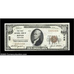 Ripon, WI - $10, $20 1929 Ty. 1 The First NB Ch. # 425Two pieces, the $10 Very Fine-Extremely Fine, the $20 Very Fine. Important notice: Heritage usually auctions material at the rate of 200-250 lots per hour. On some occasions eBay Live bid software or the Internet may not be able to keep up with the pace of the auction. We recommend placing a realistic absentee bid now as insurance to avoid disappointment. Occasionally the auctioneer may eliminate or reject an eBay Live bid, and the auctioneer may also reopen a lot after the close of the eBay live bidding (usually because we missed an audience bid), and may reject your bid even if it shows you as the winning bidder. By bidding via eBay Live, you agree that Heritage may award the lot to another bidder at its sole discretion under the circumstances described above or any other reasonable circumstances. Also please note that all Heritage lots purchased through eBay Live carry a 20% Buyer's Premium. Please make sure you read the Terms and Conditions before you bid.