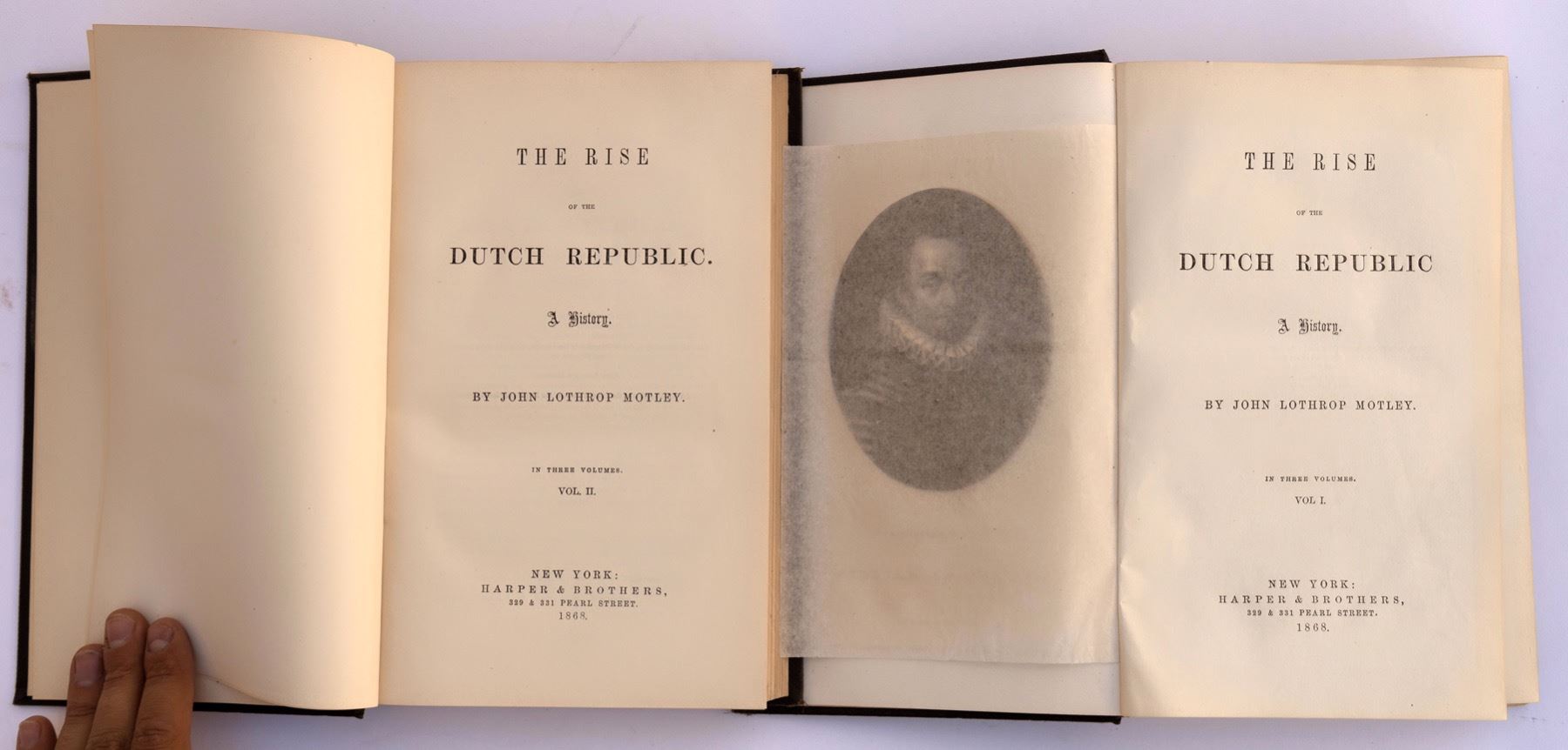 2 volumes, 1868. The story of the rise of the Dutch Republic between 1555-1566. State: City: Date: Provenance: Stuart Mackenzie Montana Ephemera Collection