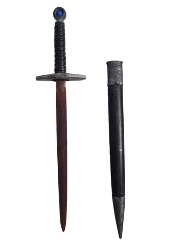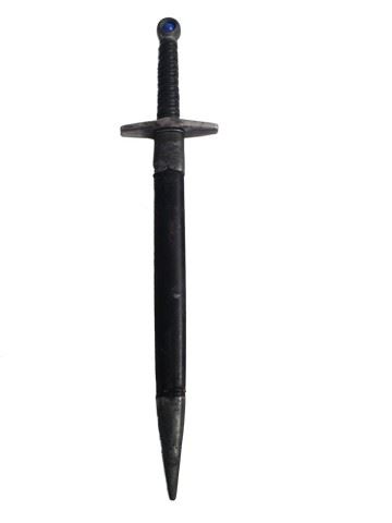Screen used death dealer black and silver metal dagger with black wrapping around the grip and bright blue stone in the pommel. (approx. 17"x4")