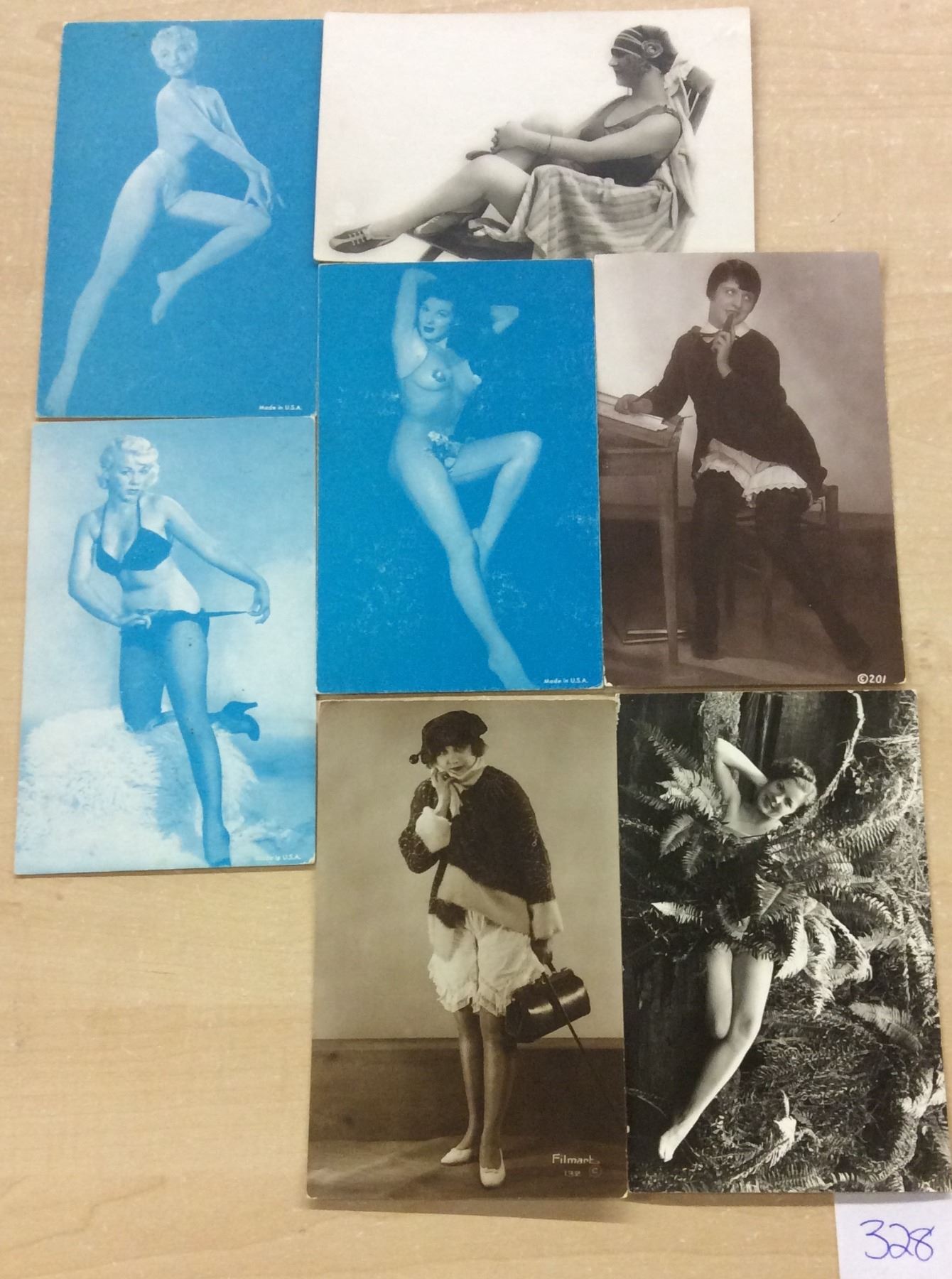 7 pin up women postcards. 4 real photo and 3 arcade cards.