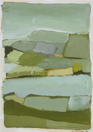 FIELDS and TOWARDS KINVARA (A PAIR) each signed and dated [1983] lower right; original exhibition labels on reverse oil on paper <BR>25 by 19cm., 10 by 7.5in. <BR><b>Provenance:</b><BR> Solomon Gallery, Dublin; Private collection