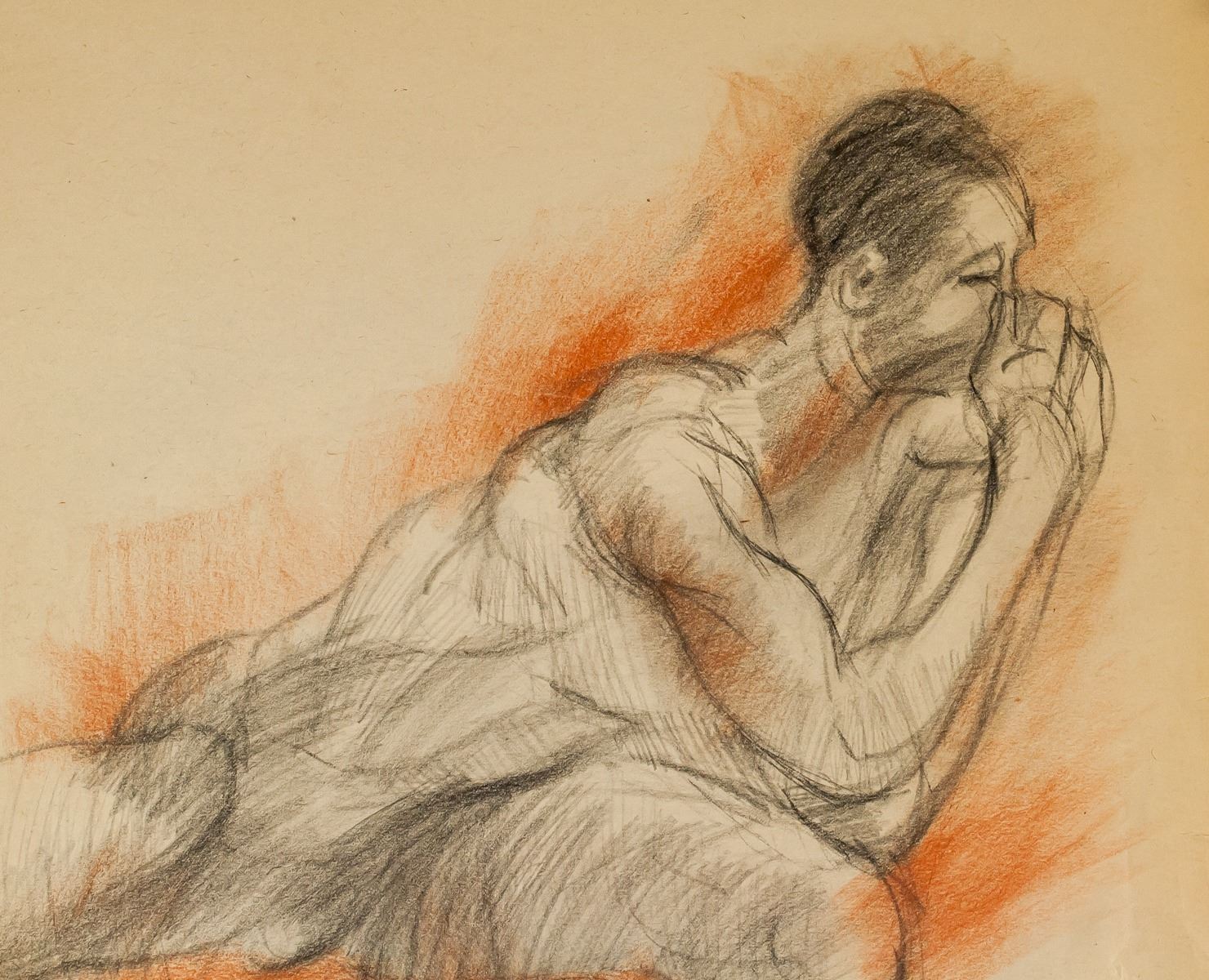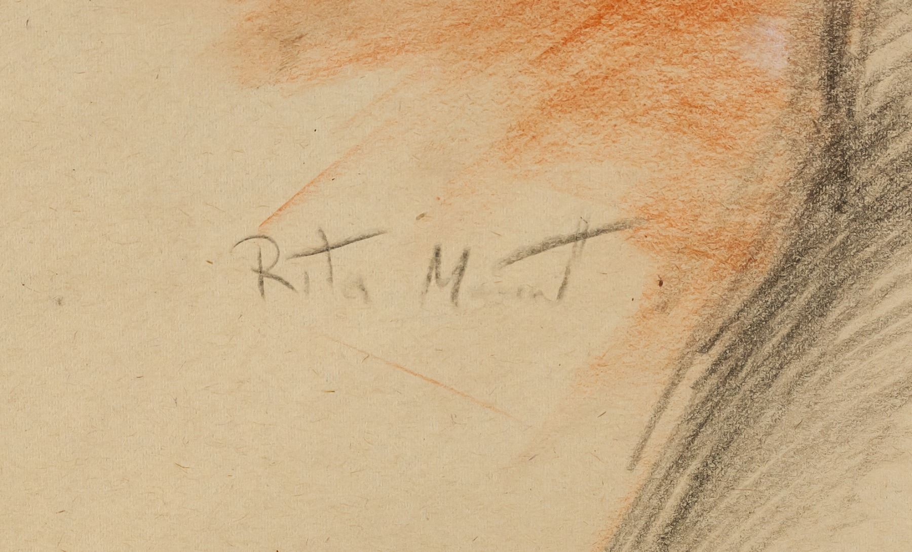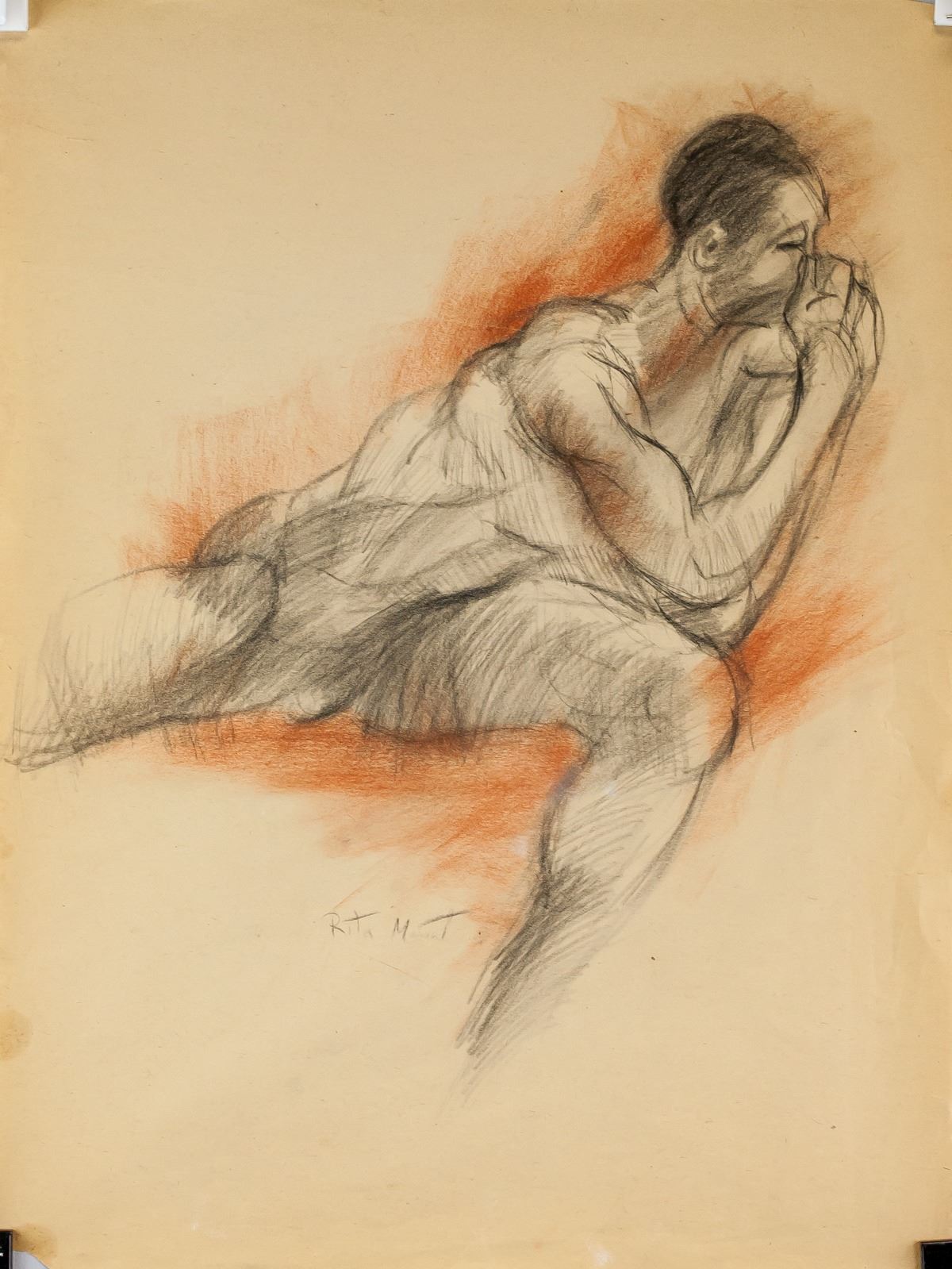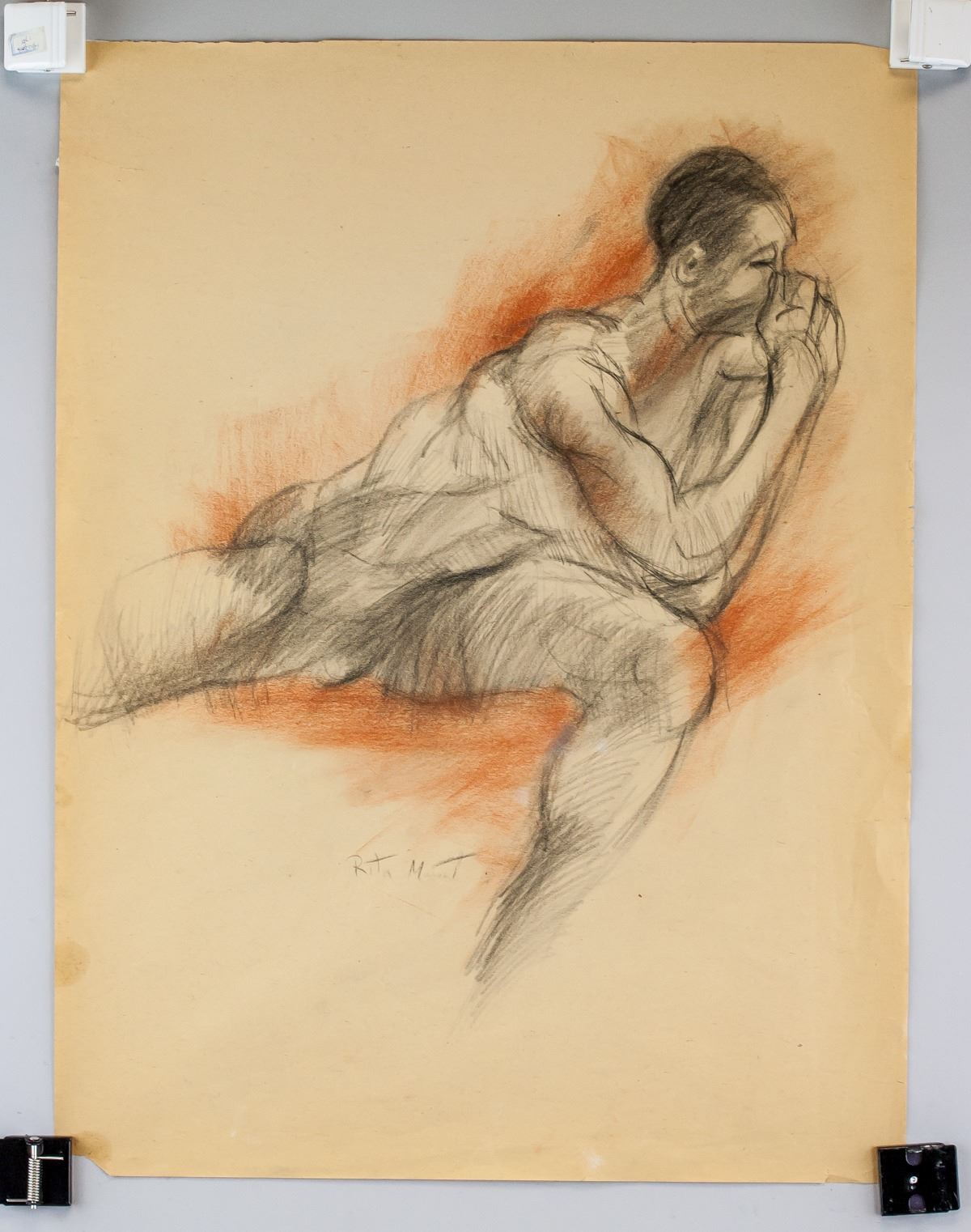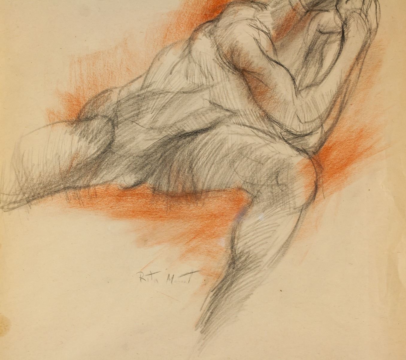 Charcoal on paper. Featuring nude figure. Signed Rita Mount near the bottom center. Attributed to Rita Mount(1885-1967, Canadian). 60 x 45 cm (23.6 x 17.7 in)