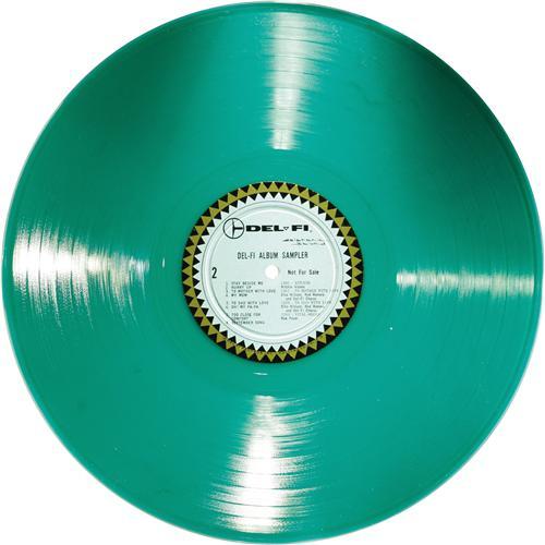 <B>Ritchie Valens in "Del-Fi Sampler" Green Vinyl Promo LP (Del-Fi 01 Mono, 1959).</B></I> This rare item featured 18 cuts, mostly by forgettable groups or artists, excepting four by Ritchie Valens, including "Come On, Let's Go", "Donna", "Stay Beside Me", and "Hurry Up". The paper sleeve is in VG-EX 6, but the green vinyl record's in NM 8. <I>From the GRT Collection</B></I>.<BR><BR><b>Shipping:</b> Recordings (<a target="_blank" href="http://www.heritageauctions.com/common/shipping.php">view shipping information</a>)