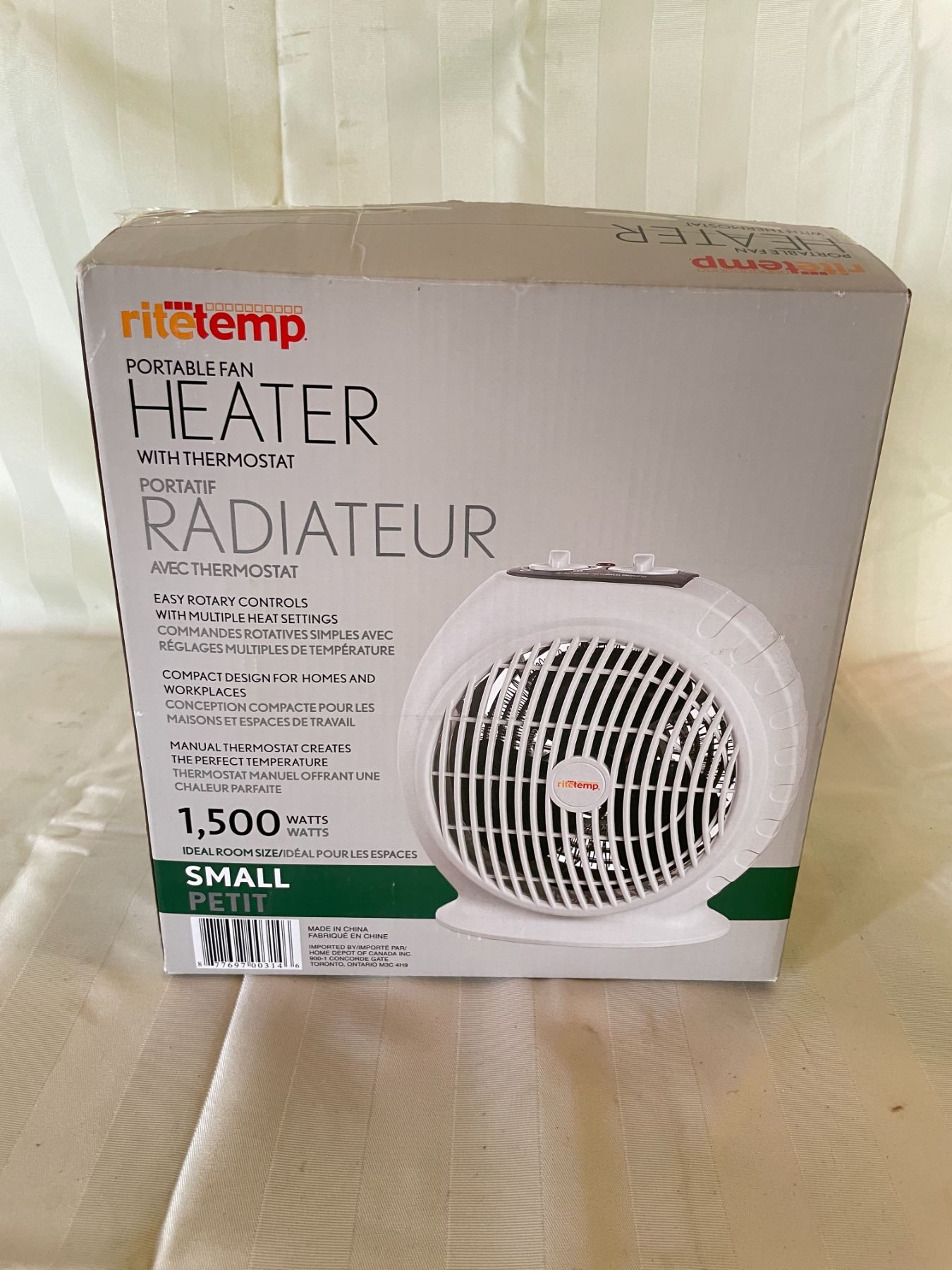 Ritetemp Portable Fan Heater with thermostat - room size small - brand new in box