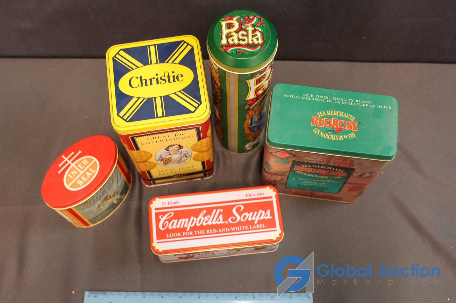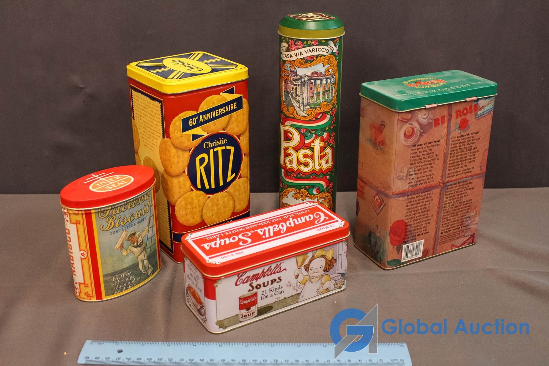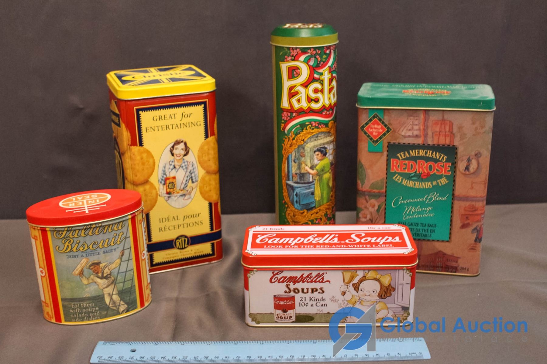 Ritz 60th Anniversary Tin, Red Rose Tea Tin, Campbell's Soup Tin, etc