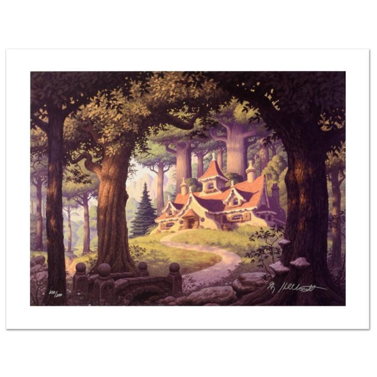 Known world wide for their fantasy and science fiction illustrations, identical twin brothers Greg and Tim Hildebrandt created an abundance of fascinating artwork, most notably their illustration work for J.R.R. Tolkien's 'The Hobbit' and 'Lord of the Rings'. "Rivendell", originally created in the 1970's for Ballantine Books, is a limited edition giclee on canvas, numbered and hand signed by Greg Hildebrandt! Includes Certificate of Authenticity! Measures approx. 28" x 21" (image).