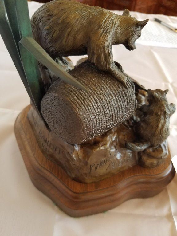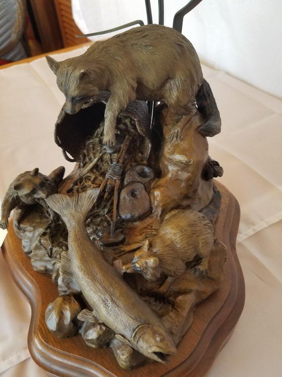 (Bronze of Racoon & Trout) - Casting #7/100 10 ½"h & 8" x 7 ¾" base Copyright 1983 - Pre-Auction Estimated Valuation $1000-$1800