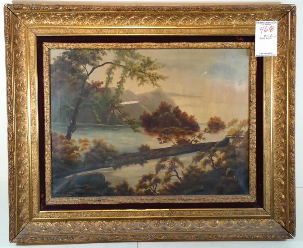 Size: 18x24; Kind: Oil on canvas; Framed: Yes; Damage: Has 2.5 in. loss of paint partial tear