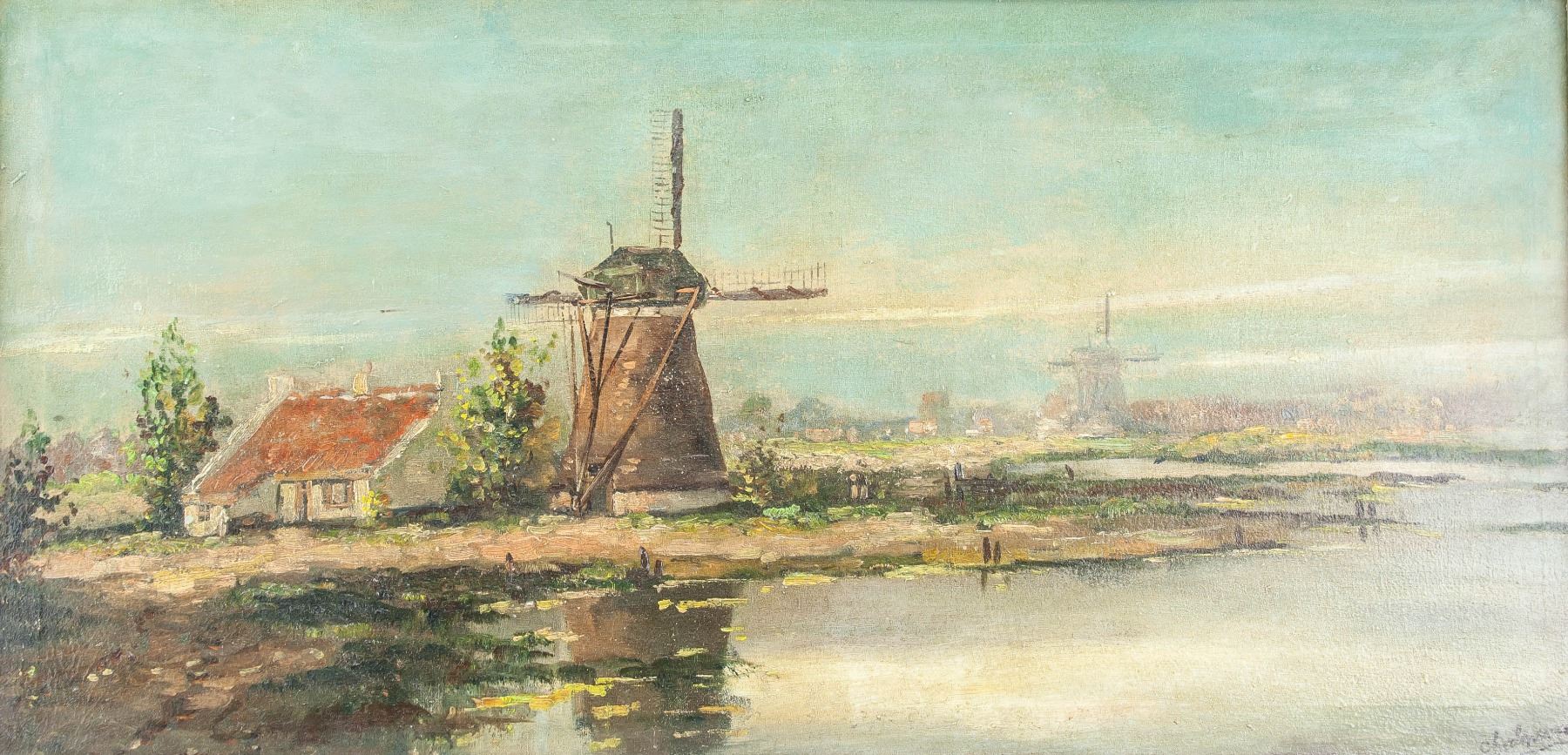 Oil on canvas framed, landscape and river scene. Signed by artist on bottom right corner. 15 x 30 inch (38 x 78 cm).