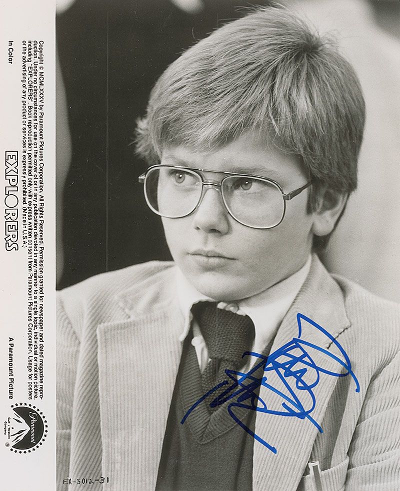 Glossy 8 x 10 Paramount Pictures publicity photo of Phoenix in Explorers, signed in blue felt tip. In fine condition, with a few vertical and horizontal streaks to the emulsion.
