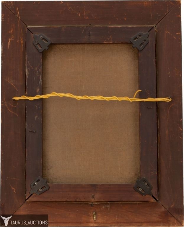 Condition: Relined. Wear, age, scratches, discoloration to gilt frame.