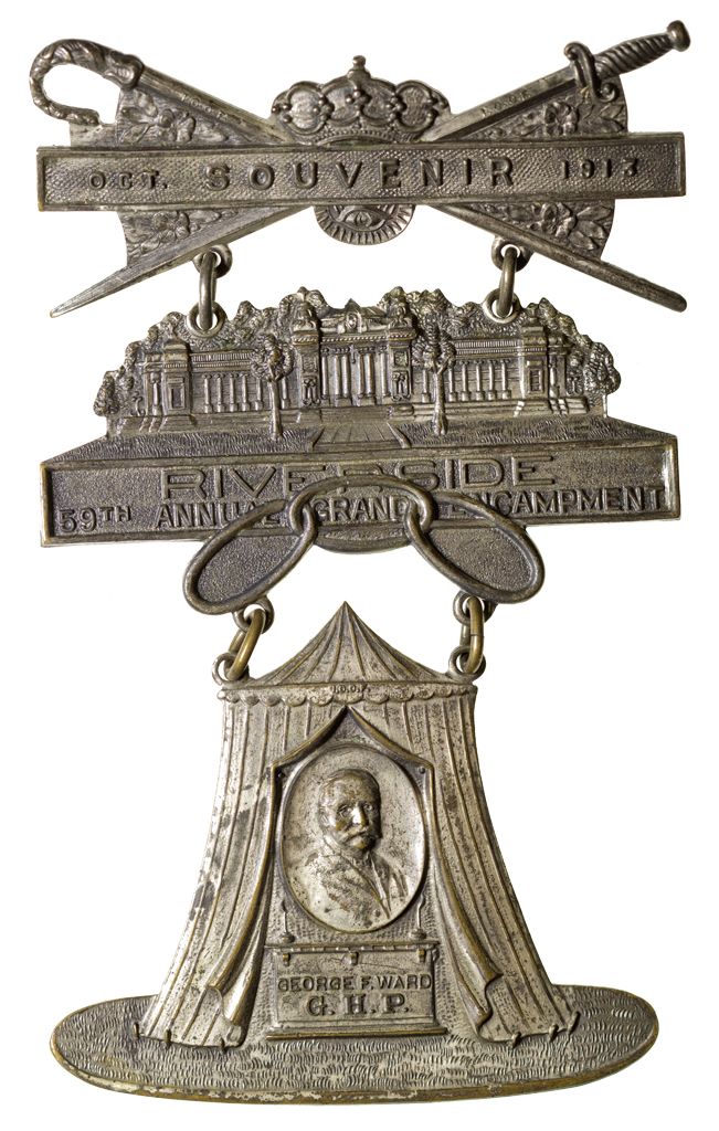 A 3-part, 4" long "Oct. Souvenir 1913/ Riverside/ 59th Annual Grand Encampment/ George F. Ward/ G.H.P." -60787