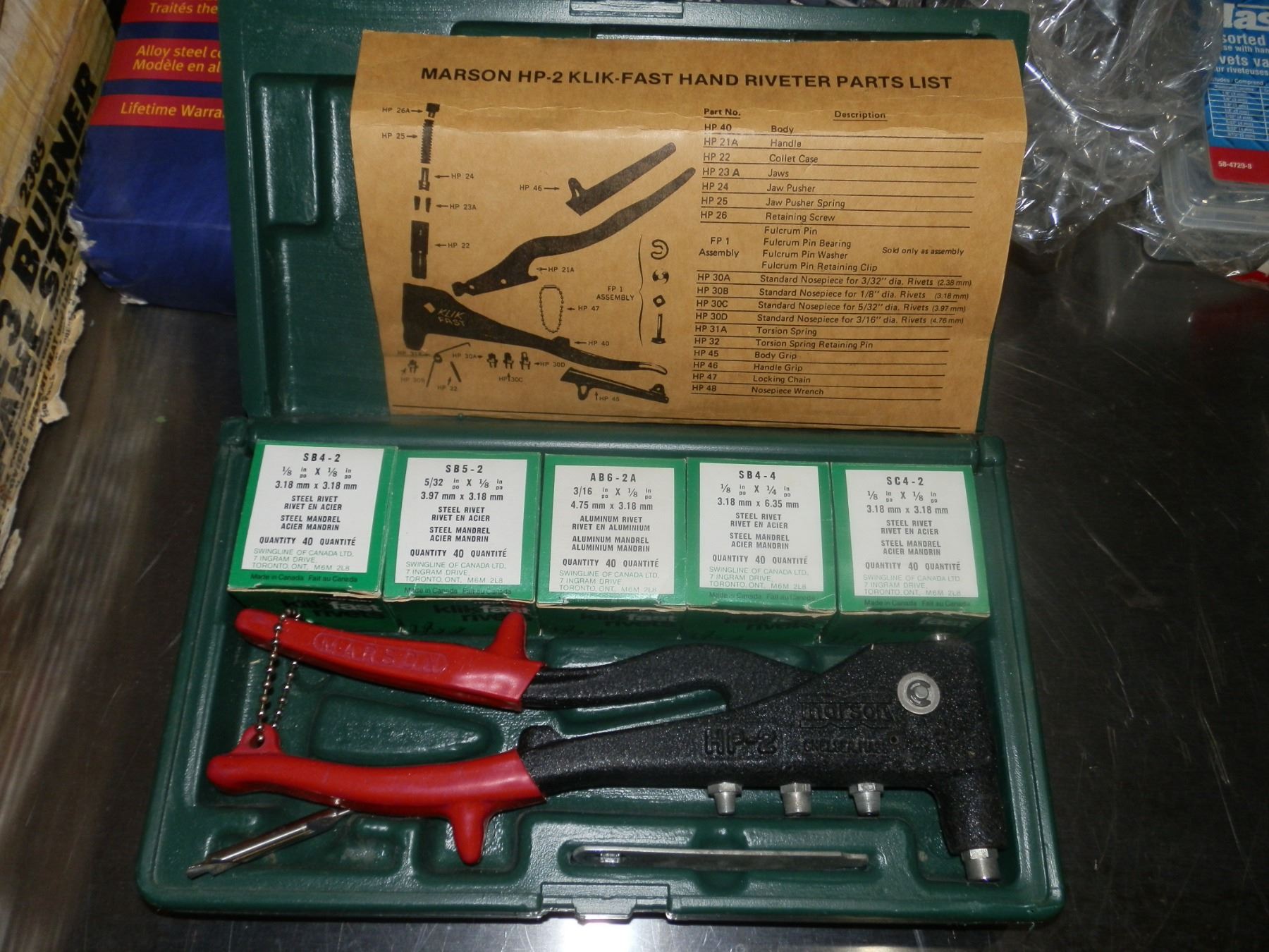 Marson hand held Riveter Set,, good condition comes with lots of rivets..used