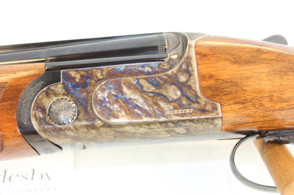 32" Vent Rib Barrels, Briley Choke Tubes, Case Colored Lock, Well Figured Wood has very sharp checkering, Palm swell for RH shooter, No blemishes observed. Original Case includes marked gun socks, (5) choke tubes, choke wrench & tools, & paperwork. Mint Condition!