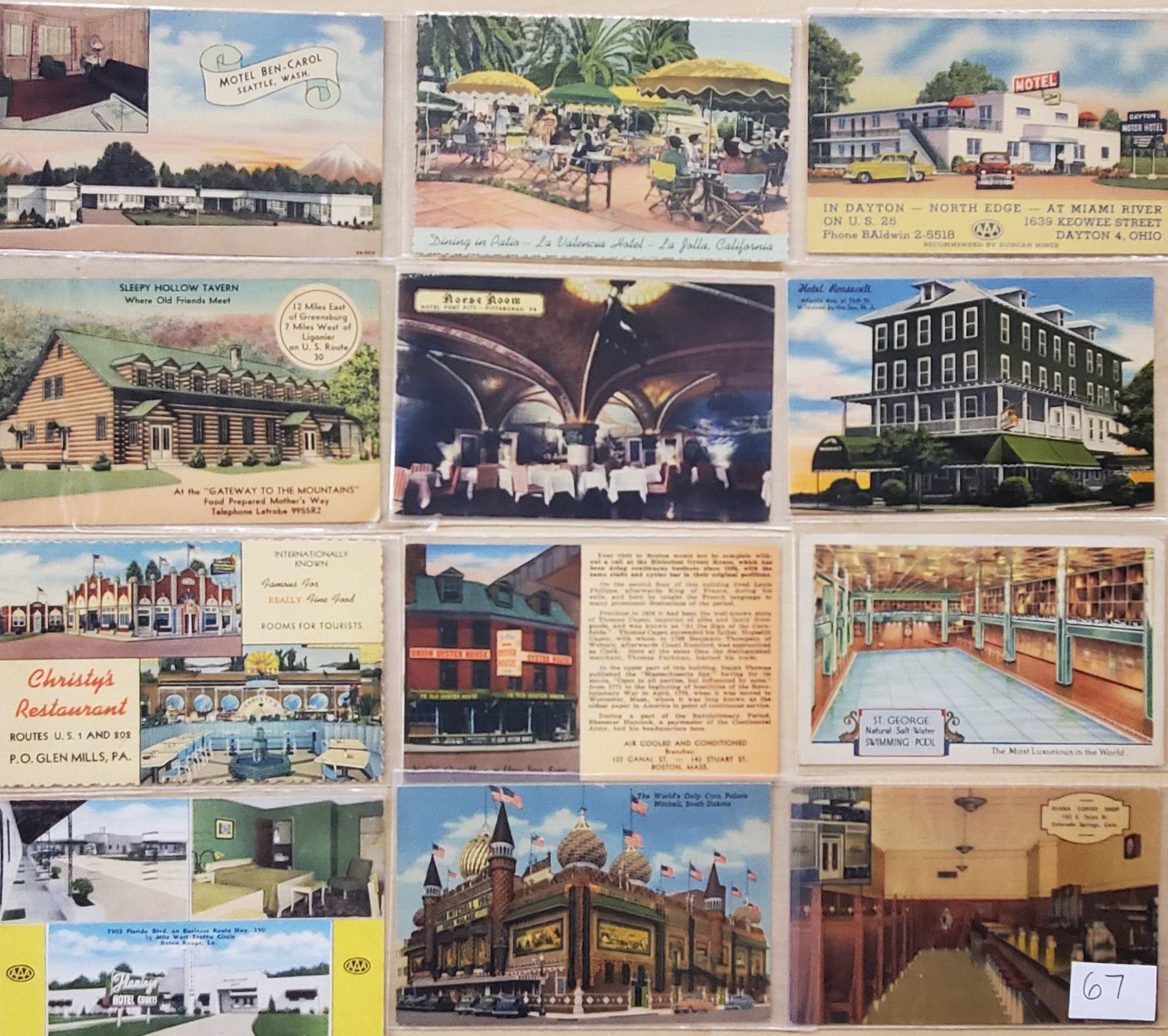 Approx. 150 Linen postcards from all over the USA. Restaurants, Motels, etc.