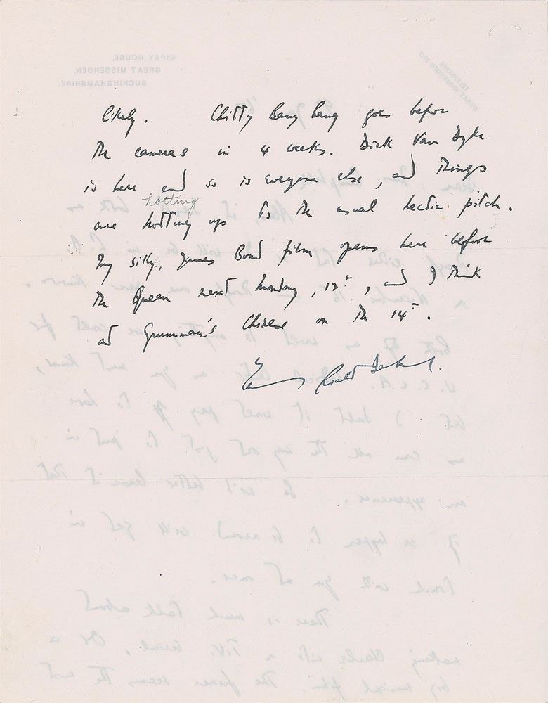 Dahl’s fourth and most celebrated book, Charlie and the Chocolate Factory, was first published in America by Alfred A. Knopf in January 1964, and then in the United Kingdom by George Allen & Unwin eleven months later. Inspired by Dahl’s schoolboy experience with England’s competitive chocolate industry during the 1920s, the story centers around 11-year-old Charlie Bucket and his adventures within the highly secretive chocolate factory of Willy Wonka. These letters date to a four-year period of both productivity and hardship for Dahl and his wife, actress Patricia Neal, the latter, as discerned from the Campbell–Travers missive, nearly fully recovered from three burst cerebral aneurysms while pregnant with their daughter, Lucy. In spite of his own physical ailments, Dahl created with constancy, and gives mention to the status of two movie scripts: You Only Live Twice and Chitty Chitty Bang Bang, both of which being Ian Fleming adaptations. The final letter sheds light on his own much-publicized displeasure with Mel Stuart’s Willy Wonka and the Chocolate Factory, as well as the progress of the highly anticipated sequel; so disappointed was Dahl was that he forbade any more film versions to be made during his lifetime. An exceptional collection of handwritten letters, each offering superb content relative to his most recognizable novel.