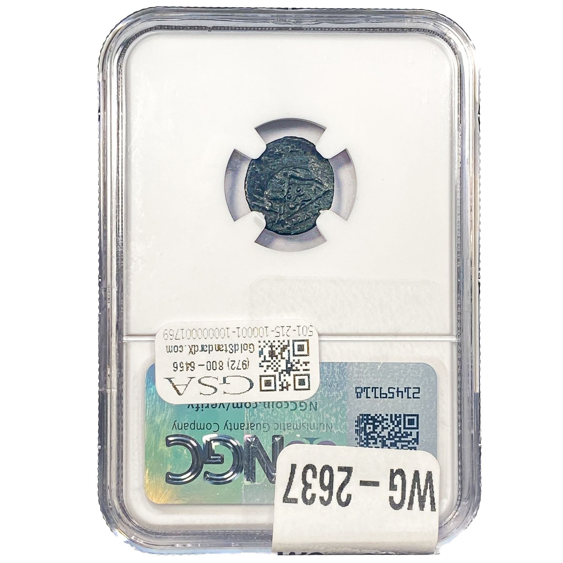 e. Coins sold referencing a third-party grading service are sold “AS IS” without any express or implied warranty, except for a guarantee by GSA that they are genuine. Removal or alteration of the holder, voids all of Bidder’s claims concerning that Product. Certain warranties may be available from the grading services and Bidders are referred to them for further details: Numismatic Guaranty Corporation (NGC), PO Box 4776, Sarasota, FL 34230, www.ngccoin.com/services/writtenguarantee.asp; Professional Coin Grading Services (PCGS), PO Box 9458, Newport Beach, CA 92658, www.pcgs.com/guarantee.html; ANACS, 6555 S. Kenton St., Ste. 303, Englewood, CO 80111; and Independent Coin Grading Co. (ICG), 7901 East Bellview, Ave., Suite 50, Englewood, CO 80111.