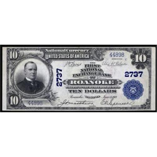 Roanoke, VA. $10 1902 Plain Back. Ch#2737