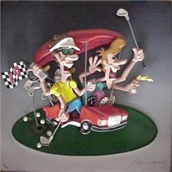 GOLFERS, mixed media cast resin multiple, numbered edition 90, signed lower right, 20 x 20 x 4". $1000/1500