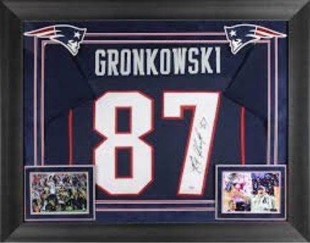 "A beautifully framed autographed Rob Gronkowski Patriots Jersey. The autograph is certified by Beckett Authentication Services and includes a sticker on the Jersey and a matching certificate attached to the back of the frame. The Jersey was just recently framed and the Frame is in perfect condition. The frame is ready to hang right out of the box. Size and Frame details are as follows:Frame: 35" x 43" Black FrameBeckett COA. This item comes with a Certificate of Authenticity from a third party authenticator. This Certification of Authenticity does not imply that the item will be certified by any other rival authentication companies. The accompanied certification is the only certification the auction company can confirm. These items are being sold as collectable pieces and there is no guarantee that this item can be resold on any online marketplace. Each of these companies has their own policies and politics.