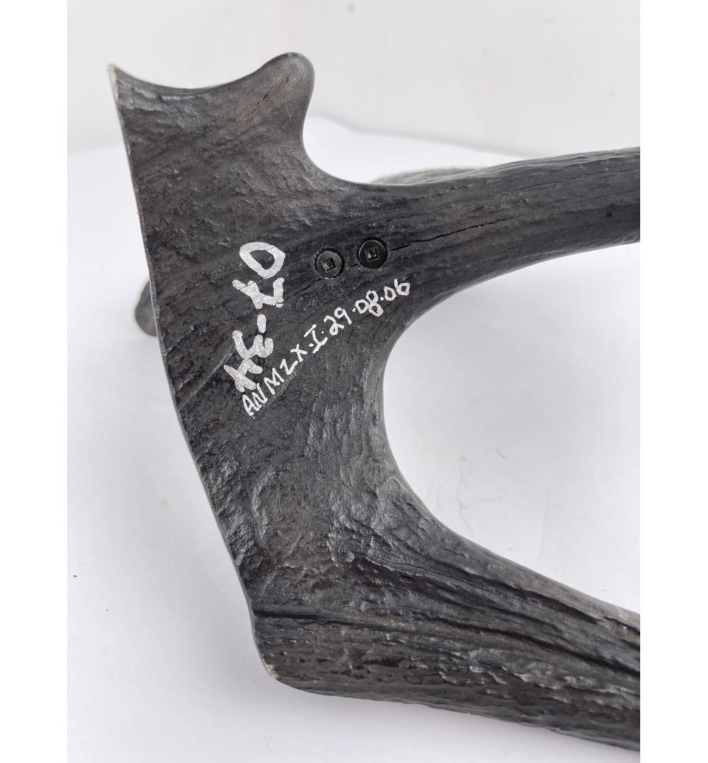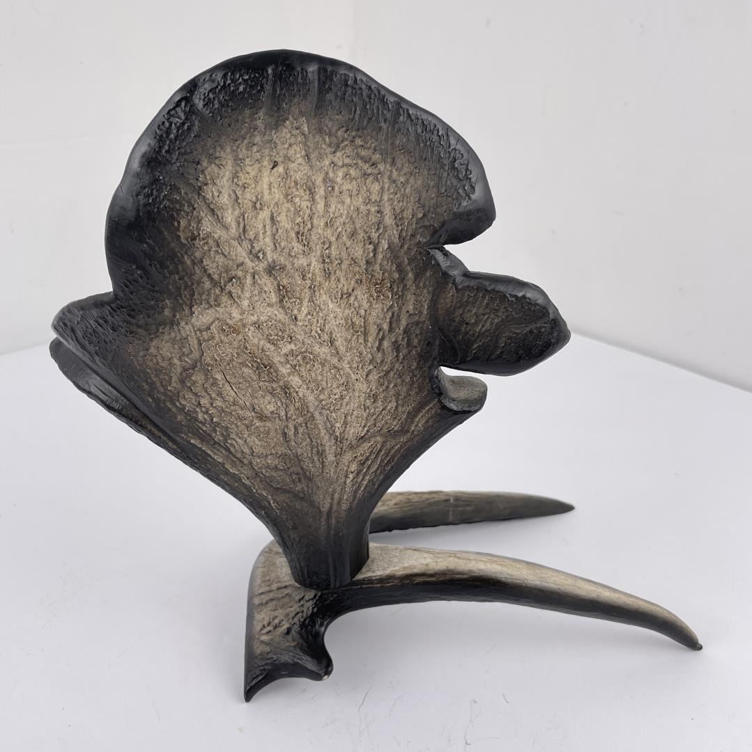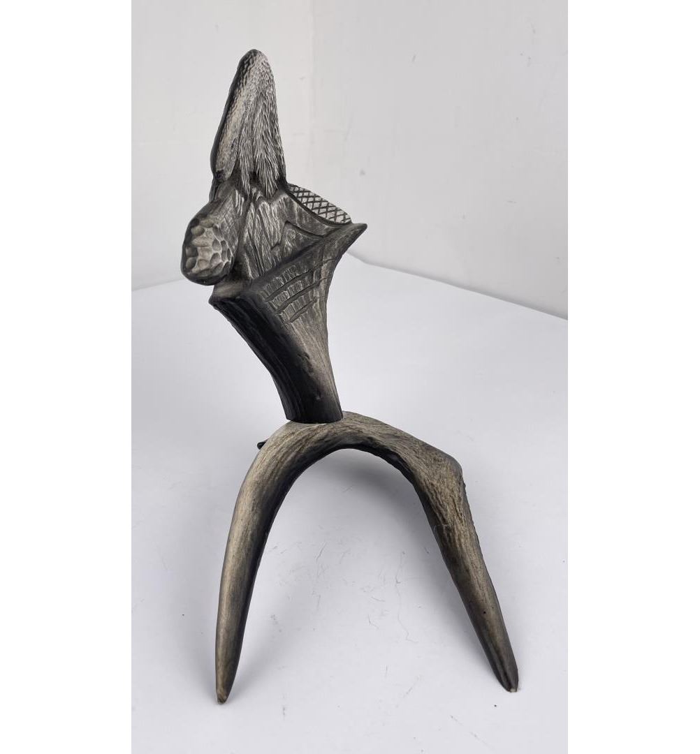Beaver carved and signed by Rob Jerome. Measures just over 12" tall Robert Jerome is a Metis artist from northern Saskatchewan who carves in both antler and stone. He enjoys fishing and other outdoor activities and says, "The land, the animals and the people that live here are my inspiration". Robert's father, Roger Jerome, is also an artist and encouraged his son to experiment in expressing himself with the tools at hand.