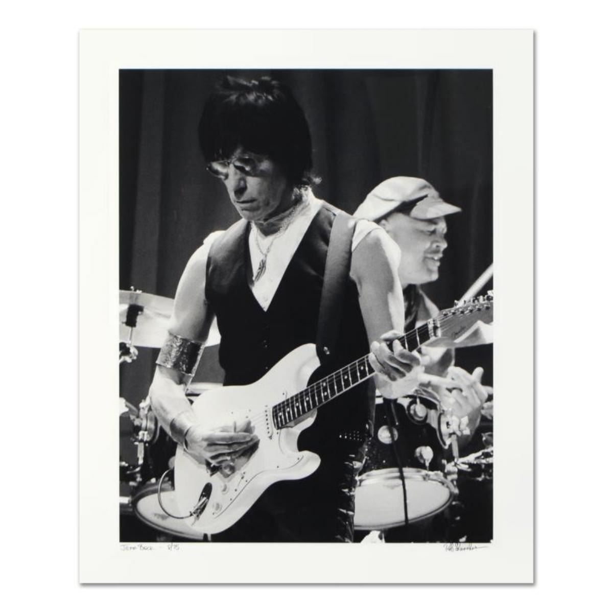 "Jeff Beck" is a limited edition giclee on paper, numbered and hand signed by acclaimed music industry photographer Rob Shanahan. Includes Certificate of Authenticity. Measures approximately 15.5" x 20" (image).