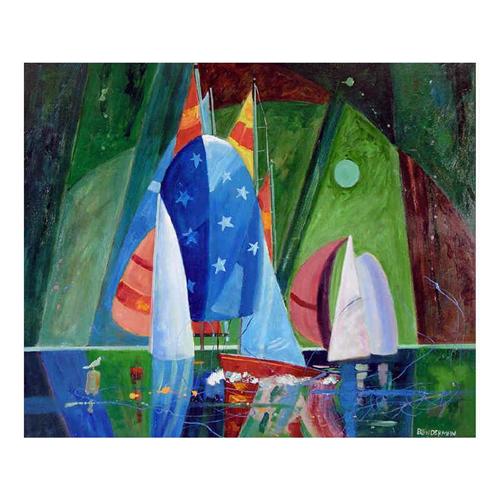 [Canadian b. 1934] SAILS & SKY Oil on canvas 30 x 36 in. Signed & titled.