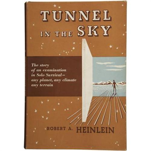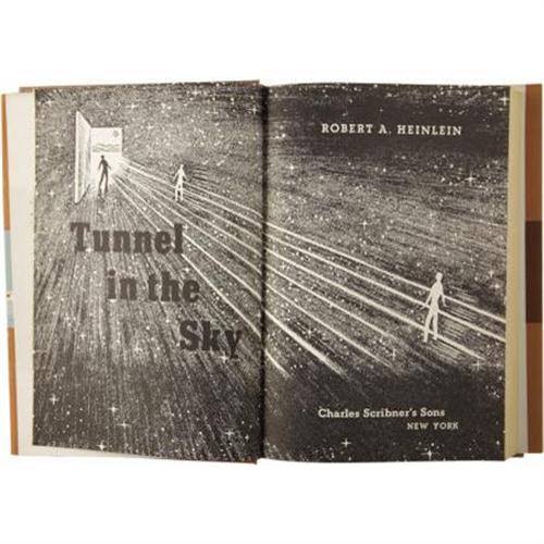 <B>Robert A. Heinlein. </B></I><B><I>Tunnel in the Sky</B></I></B></I><B>.</B></I> New York: Charles Scribner's Sons, 1955.<BR><BR>First edition. Octavo. 273 pages. Jacket and title page illustrated by P. A. Hutchison.<BR><BR>Original light brown cloth with darker brown titles and illustration on the spine and front board. Only the slightest shelf wear. Jacket is in like condition. A beautiful copy in fine condition. <I>From the Robert and Diane Yaspan Collection.</B></I><BR><BR><b>Shipping:</b> Books & Catalogs (<a target="_blank" href="http://www.heritageauctions.com/common/shipping.php">view shipping information</a>)