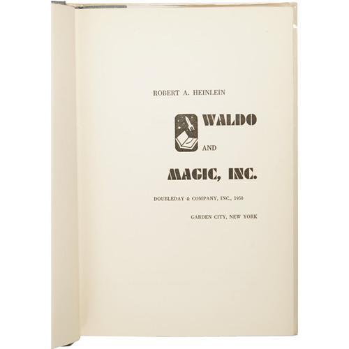 <B>Robert A. Heinlein: <I>Waldo and Magic, Inc.</B></I>.</B></I> (Garden City, New York: Doubleday, 1950), first edition, 219 pages, blue cloth with black lettering on spine, 8vo (5.5" x 8"), dust jacket (in protective Mylar). Jacket illustration by Beecher. This book contains two novellas previously published in science fiction pulp magazines under the pseudonym Anson MacDonald: "Waldo" was published in the August, 1942 edition of <I>Astounding Science Fiction</B></I> and "Magic, Inc." (as "The Devil Makes the Law") in the September, 1940 issue of <I>Unknown.</B></I> The copy presented here is in fine condition, with only minimal edge wear present, and slight wear to the head and tail of the dust jacket spine. A beautiful two-for-one of early Heinlein stories. <I>From the Ventura Collection.</B></I><BR><BR><b>Shipping:</b> Books & Catalogs (<a target="_blank" href="http://www.heritageauctions.com/common/shipping.php">view shipping information</a>)