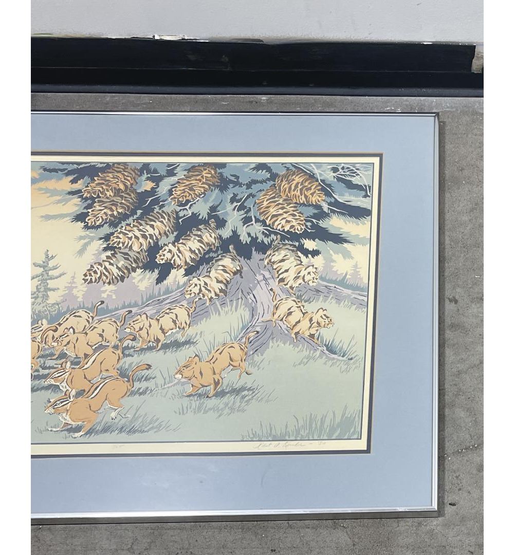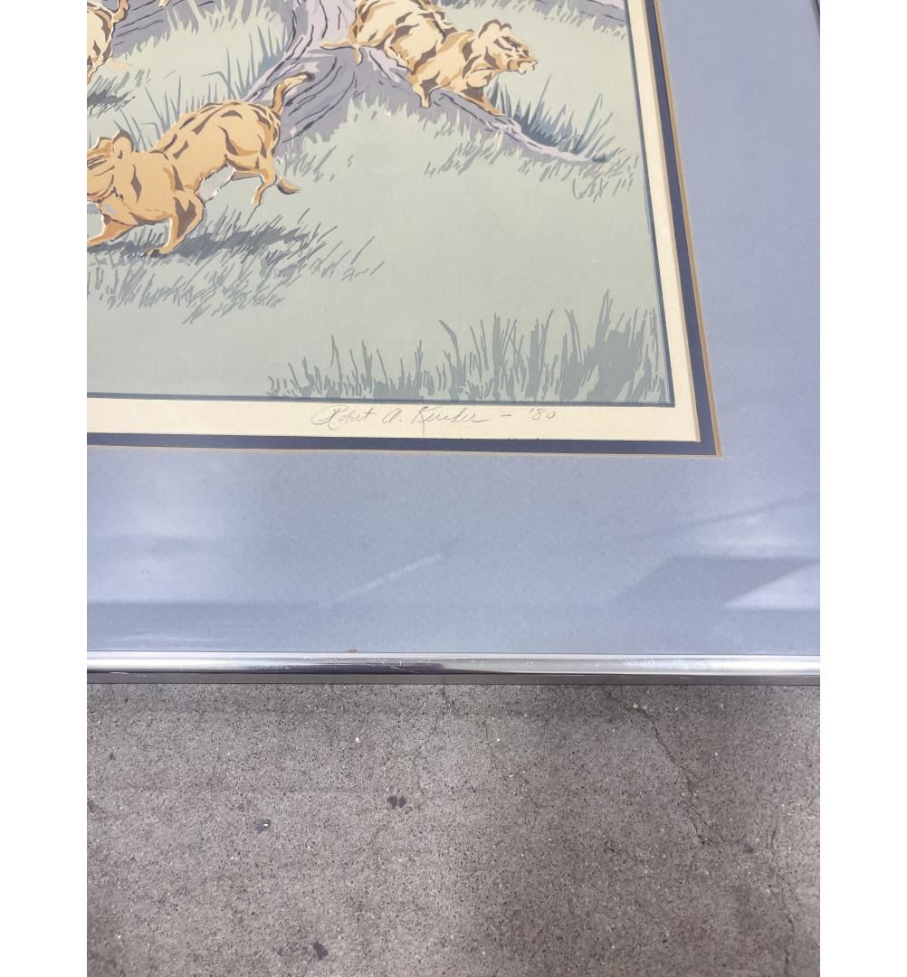 25 1/4" by 30 1/8" framed. Bob Kercher (20th century) was active/lived in Montana. Bob Kercher is known for Floral, wildlife, Indian, silkscreen. From Great Falls, Montana, Kercher has been a long-time participant in the C.M. Russell Auction and was a featured artist at the 1998 Pacific Rim wildlife Art Show in Seattle. He is a seven-time finalist for the Montana Duck Stamp, and his work is in the White House Collection, having been chosen by President Ronald Reagan.