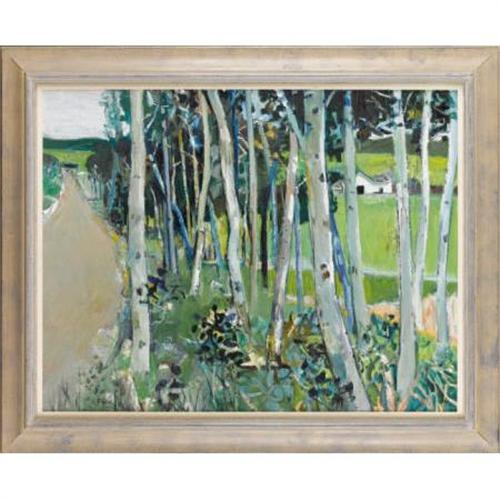 <B>ROBERT AARON FRAME </B></I>(American 1924-1999)<B></B></I><BR><I>Summer Landscape with Birches</B></I><BR>Oil on original unlined canvas<BR>27 x 36 inches (68.6 x 91.4 cm)<BR>Signed lower left: <I>R Frame</B></I><BR> <B>Condition Report:</B> Original canvas, minor loss upper center, otherwise good condition<BR><BR><b>Shipping:</b> Requires 3rd Party Shipping (<a target="_blank" href="http://www.heritageauctions.com/common/shipping.php">view shipping information</a>)