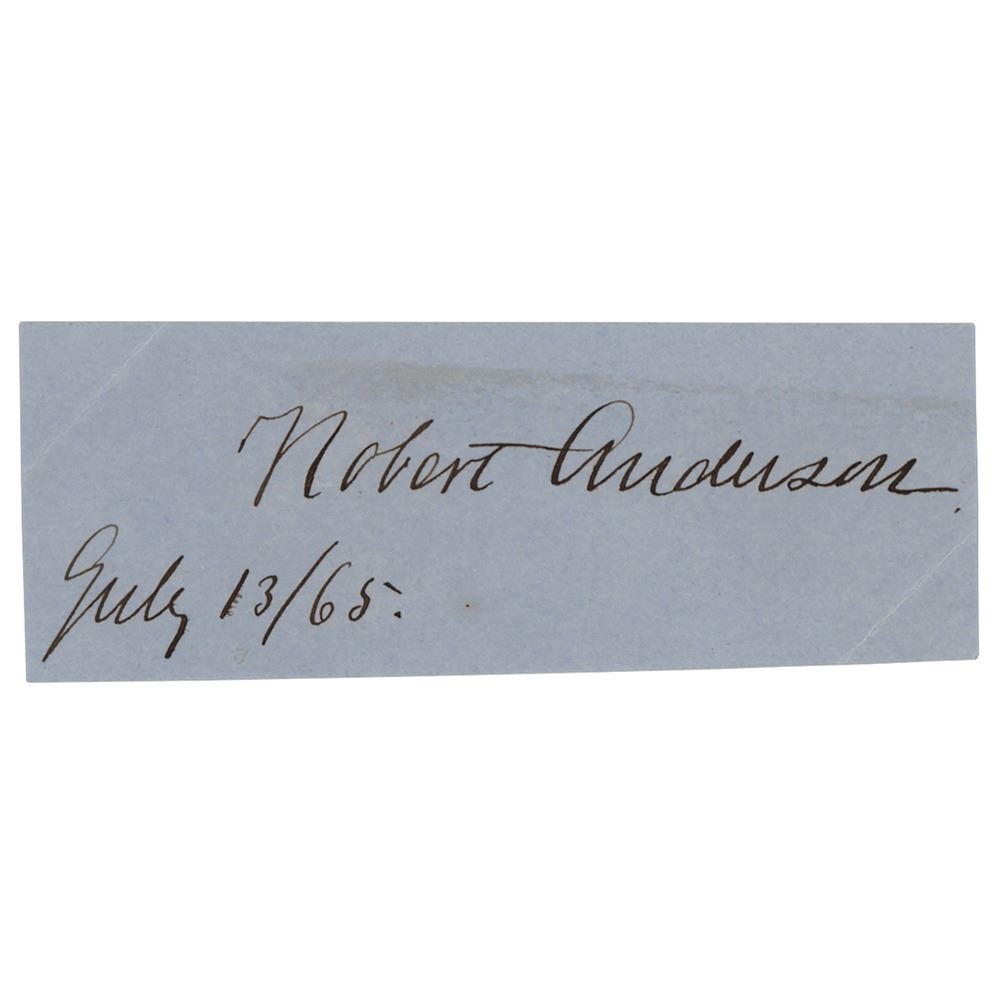 Neat ink signature, "Robert Anderson, July 13/65,†on an off-white 3.25 x 1 slip. In fine condition, with creases to two corners. A sought-after autograph from a desirable date, signed just two months after the end of the Civil War. Accompanied by an unsigned carte-de-visite portrait of Anderson in uniform.