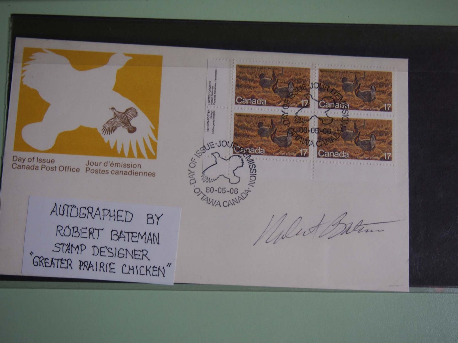 Robert Bateman Autograph, Stamp Designer Of Greater Prarie Chicken